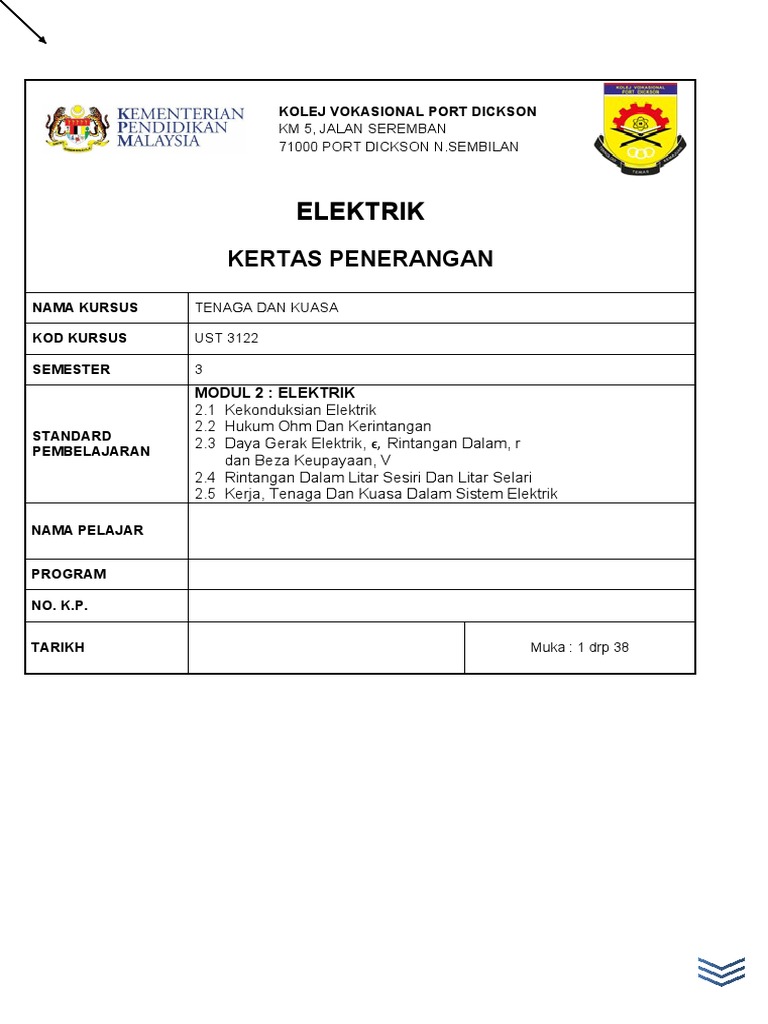 Bab 3 E L E Ktrik F I Z I K T I N G K Ata N 5 K S S M Pdf Free Download